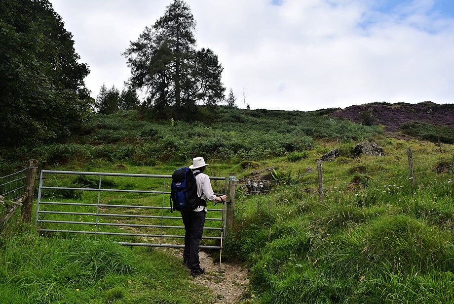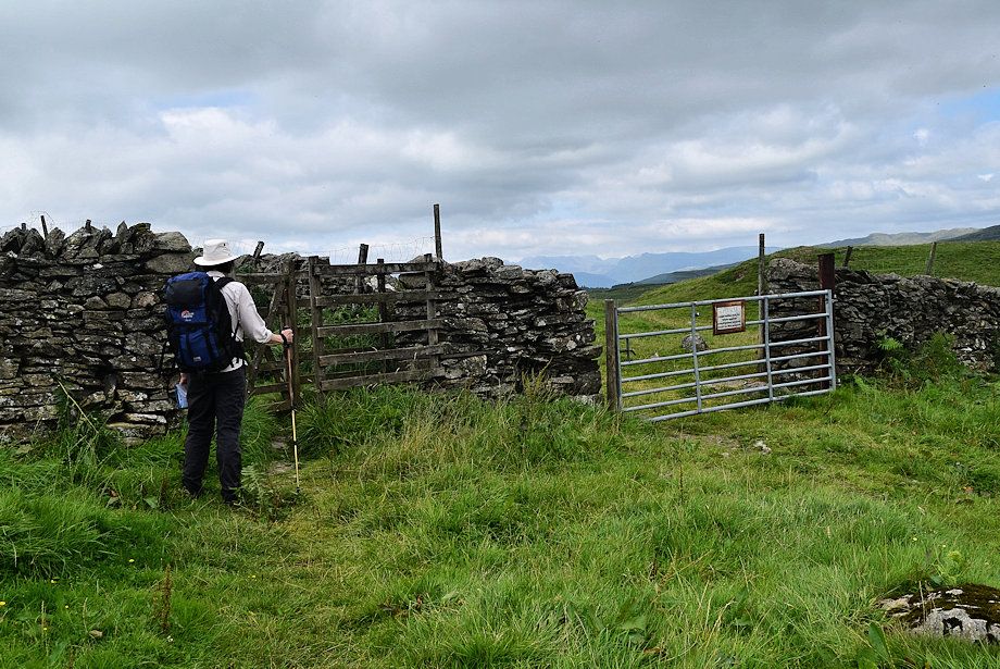 | A handgate to the left of the field gate allows access to the highest point of Hugill Fell |