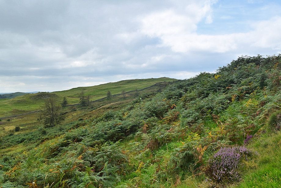 | A clear path path through the bracken leads up the true summit of Hugill Fell |