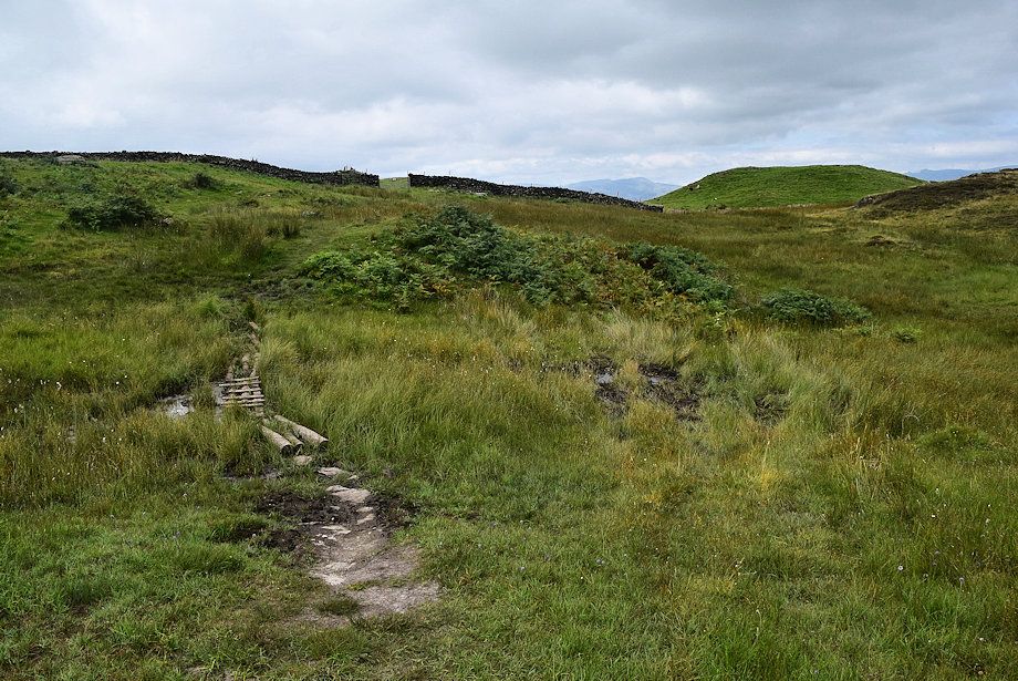 | On reaching a wall corner Black Crag comes into view which Wainwright considered to be the summit of Hugill Fell |