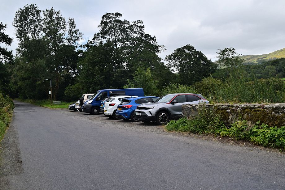 | A small parking area just beyond Barley Bridge on the Kentmere Road north of Staveley is a convenient starting point for this walk. However it does tend to fill up early which leaves no alternative but to park in the village |