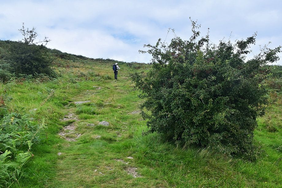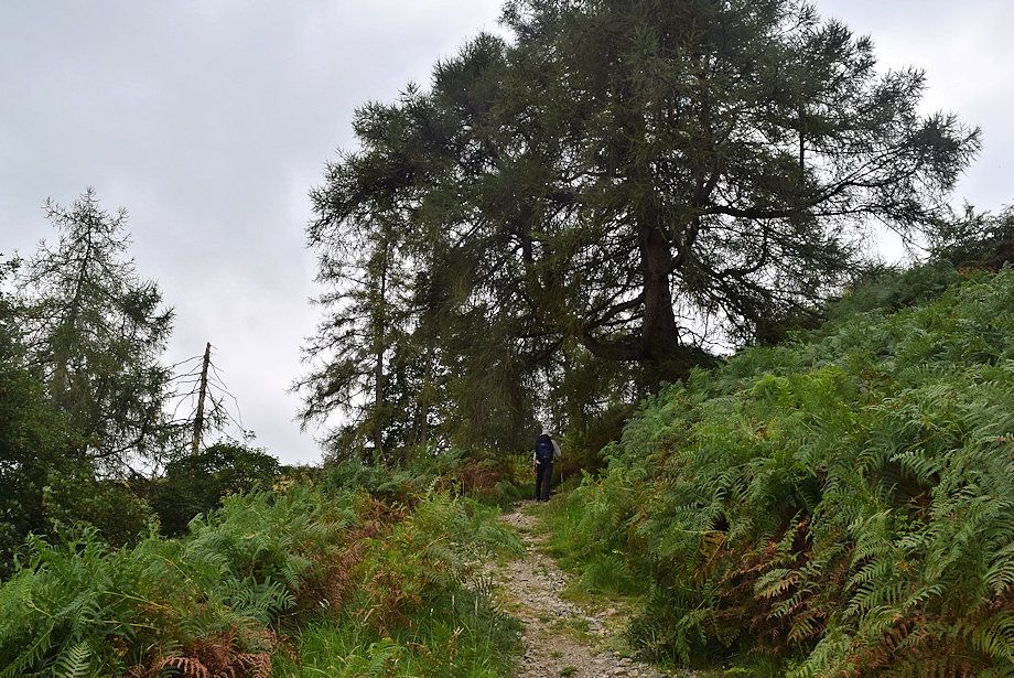 | The path above the coppice is the steepest part of the ascent |