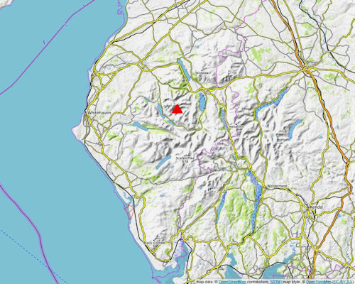 Follow the ridge south over Mart Bield to the broad col of Hause Gate which is crossed by an old miner's path between Manesty and Little Town. Continue straight ahead from the col on a well used path which curves above Yewthwaite Combe. This main path by-passes the actual summit of Maiden Moor and, higher up, has inferior views, so when the slope eases as the path approaches the summit ridge trend right onto a lesser used path that leads up to a cairn above Maiden Moor's north-west ridge which is a wonderful viewpoint. Continue on along the escarpment, passing the head of Barnes Gill and Bull Crag to reach a small pile of stones which mark the summit of Maiden Moor.