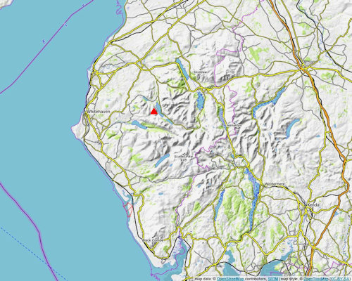 By contrast the north ridge falls abruptly over a series of crags to the pastures of High Park. Melbreak's eastern slopes, riven by crags and gullies, sweep down steeply to the western shore of Crummock Water which forms its eastern boundary. The western slopes, overlooking Mosedale Beck, are plainer but no less steep, being mainly covered by heather and grass with rocky outcrops and tongues of scree. With no connecting ridges to other fells the ascent of Mellbreak only offers a short days outing for walkers, most choose to traverse the fell from either Buttermere or Loweswater and return by the popular footpath alongside Crummock Water's western shore. |